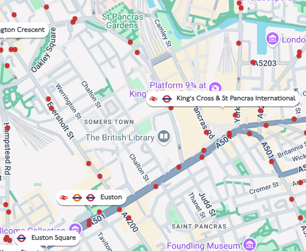 Moving between Euston and St Pancras stations in London