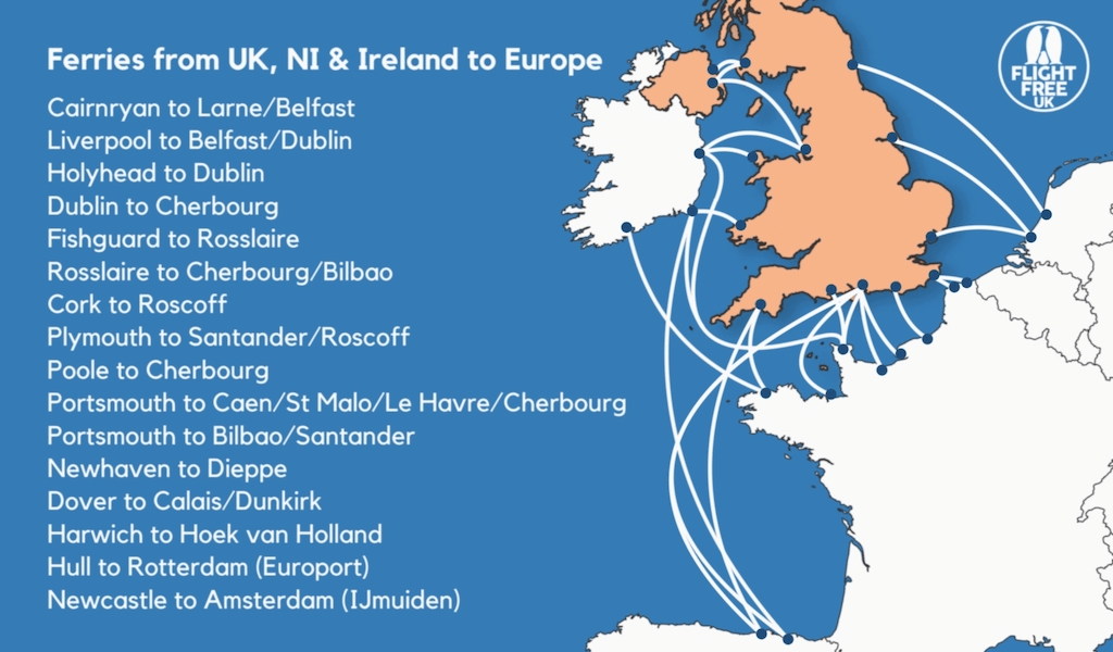 This map is from https://flightfree.co.uk/post/how-to-travel-by-ferry/ though it may not be fully up to date.